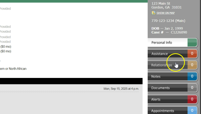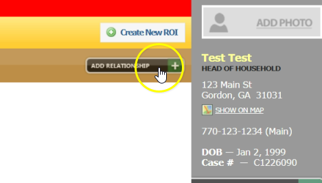 Open the case you have created. On the right-hand side, click on the banner labeled “Relationships.”