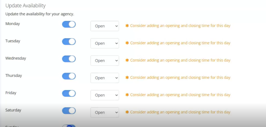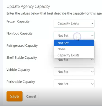Select which days your agency is available to pick up and/or receive donations. You may adjust this at any time.