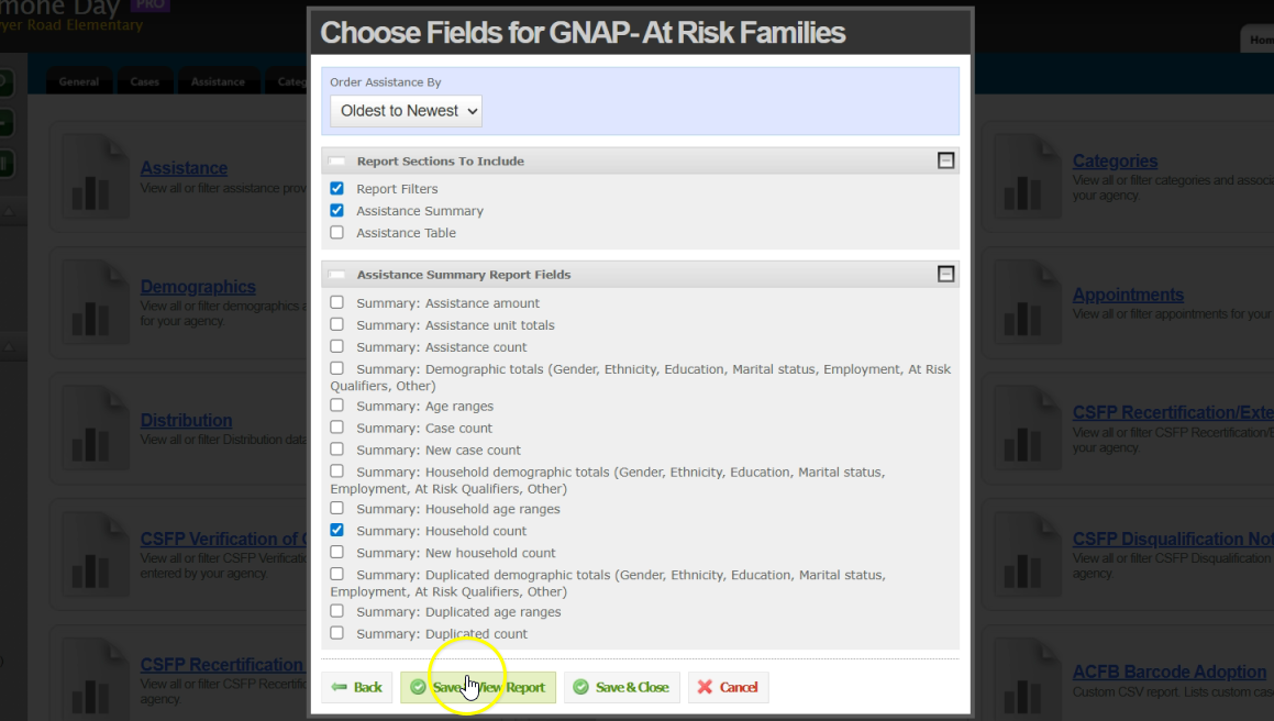 “Summary: Household count.” Scroll down and Click “View Report.”